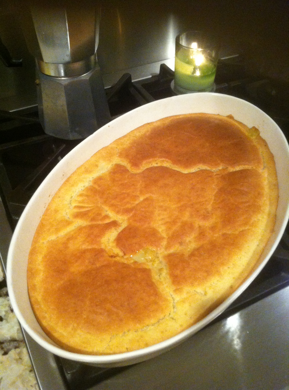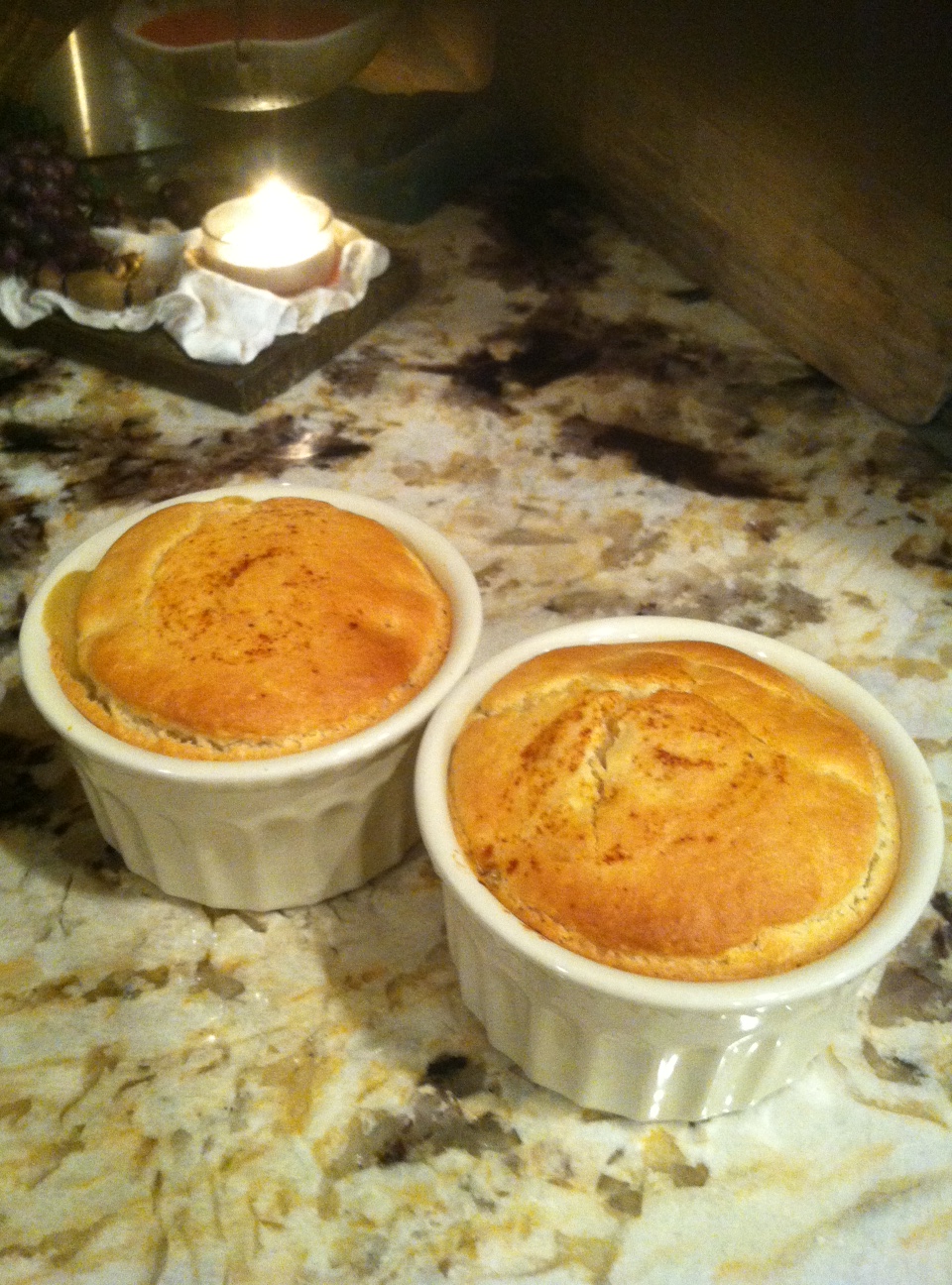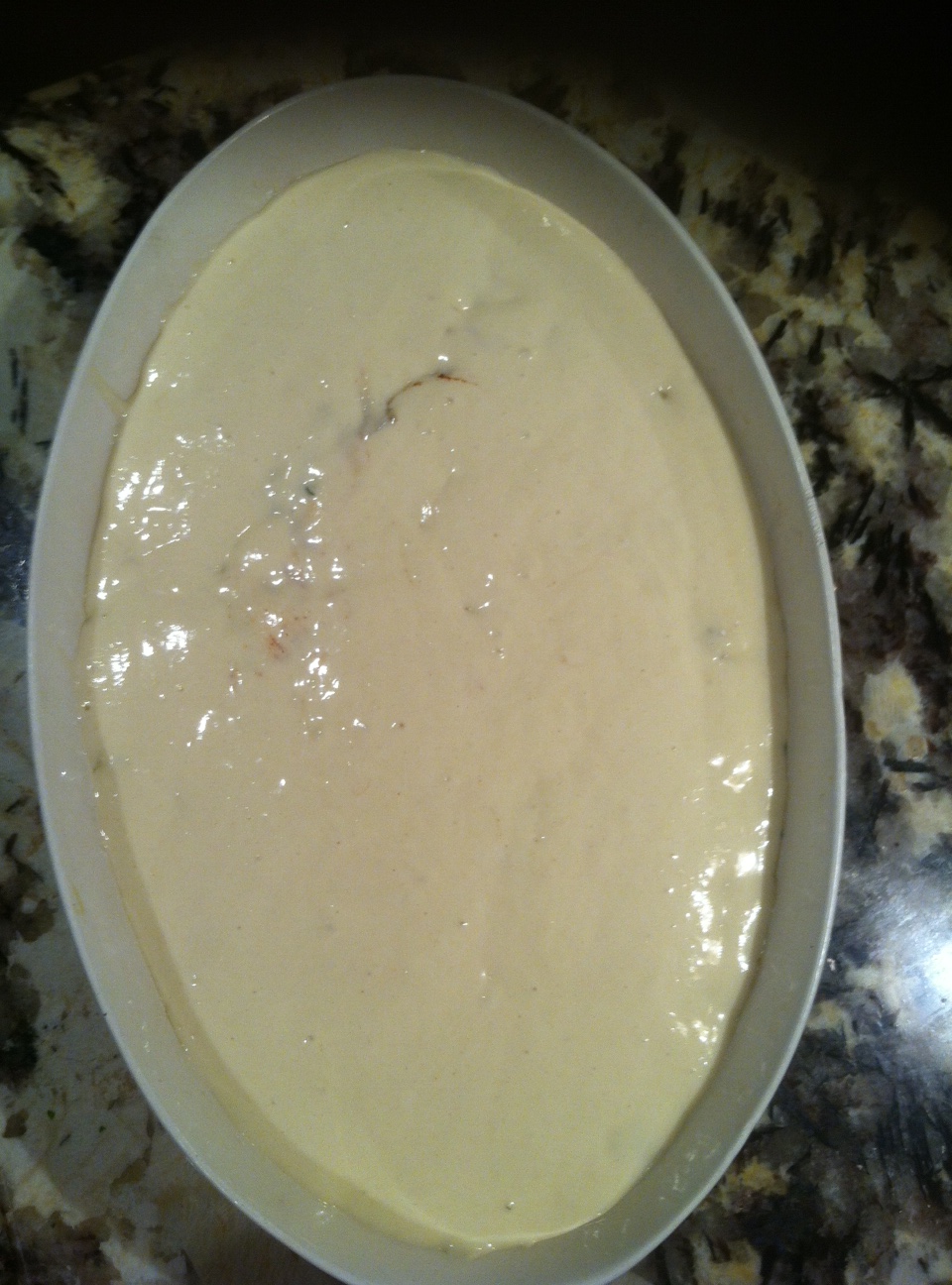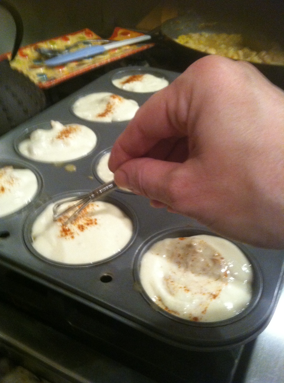 Now lightly grease your cooking dish with a paper towel and cooking oil or any type of spray oil. I usually use a casserole dish, but had decided to give “portion control” a try and use cupcake pans and also tried soufflé dishes (which worked the best for individual servings).