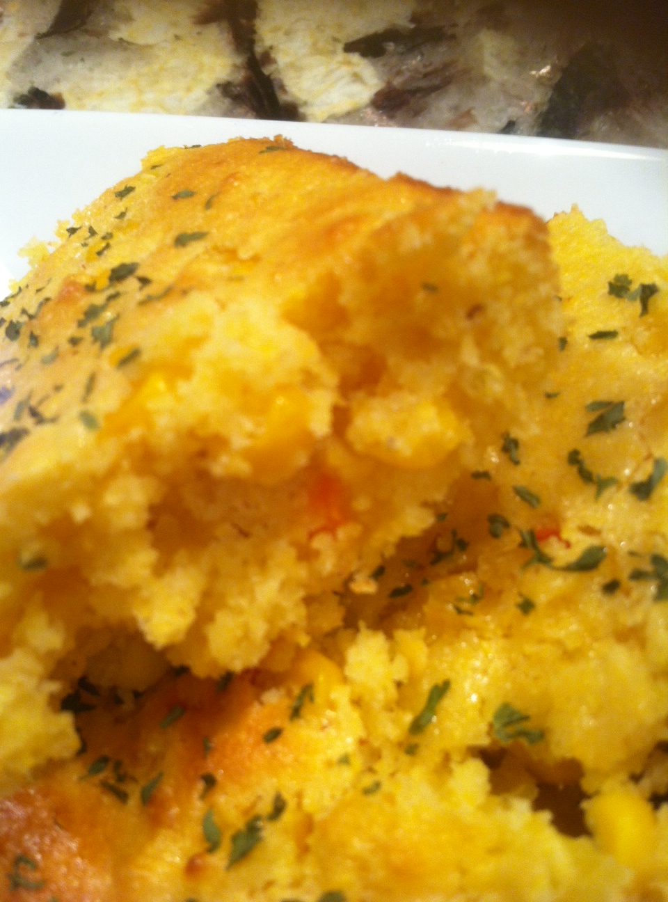 If you do not have a cast iron skillet, use a baking pan. The difference is cast iron is seasoned and reflects a different taste….but trust me the odds of your guests being cornbread judges are slim to none!!!