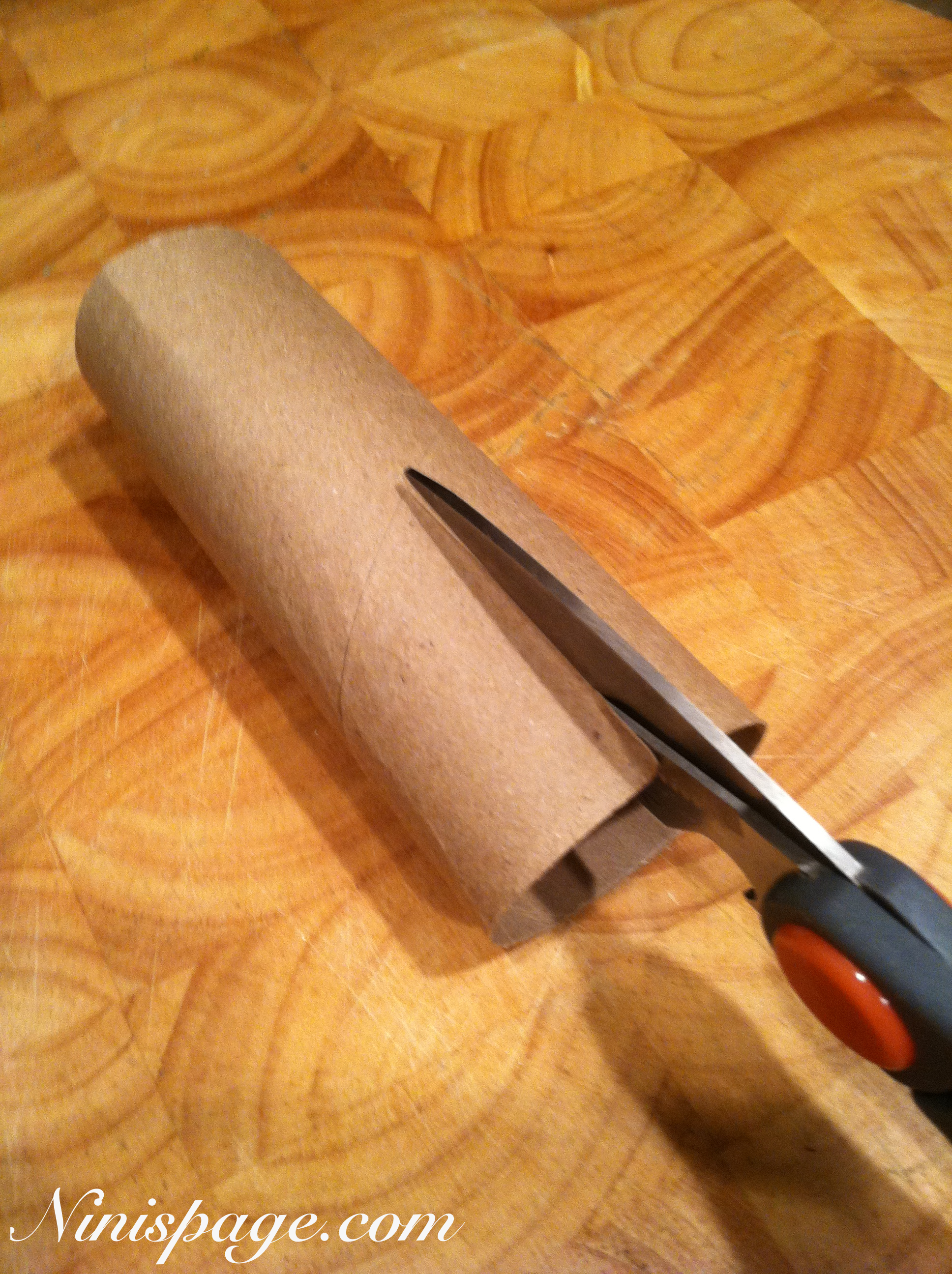 I used to place a small piece of tape to make sure the roll stayed secure. But as many of you know, the paper usually rips when you try to remove the tape. Here is a great trick and all you need is the card board roll from the end of your paper towel or toilet roll, tape and scissors.