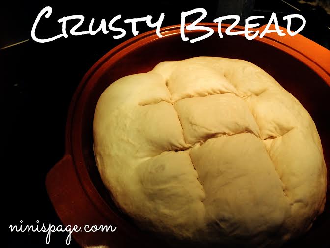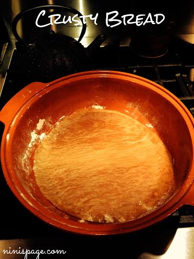 Bread! I love it! Who doesn’t? Right?!?…..Yes, fresh out of the oven with a slather of rich creamy butter (I will show you how to make your own homemade butter on a future post…stay tuned 😉 ). YUM! The Italians and the French have got it down! I am so fortunate to have fresh “Arthur Avenue” bread any time I want. My husband (the Italian) has fresh bread delivered daily to his restaurant straight from Arthur Avenue ( http://www.arthuravenuebronx.com ) in the Bronx of New York. If you live any where near NYC than you know exactly what I am talking about. OMG!!! The bread…the bread…from any bakery on Arthur is to die for!!!! They are right up there with fresh baked croissants from Paris! (This should be on your “Bucket List” 😉 ) Which brings me to my bread baking marathon. I have made so many types of bread that are okay, but this one is perfect! (after many twists to many recipes I have slightly modified Williams-Sinoma’s Crusty Country Loaf recipe). It does require a Cloche (French for Bell) style baking/roasting dish that has a lid, but, no worries if you don’t have one a Dutch Oven works fine. Or in my case I used a clay roasting dish. You do need a baking dish with a lid so the heat can stay in and the effect of a brick oven can be achieved. That is why the best breads are baked in a brick oven. I did bake a few loaves on my pizza stone with no pan at all, but, found the inside of the bread was more dense and the crust was not so crusty. So, if it’s authentic crusty bread you want to achieve, follow me and let’s make some bread. You can bake a loaf in about 3 -4 hours from beginning to end, and it will be perfect! Crunchy on the outside and and light on the inside….I cannot wait for my loaf to come out of the oven!!! I will be making this bread many many more times!