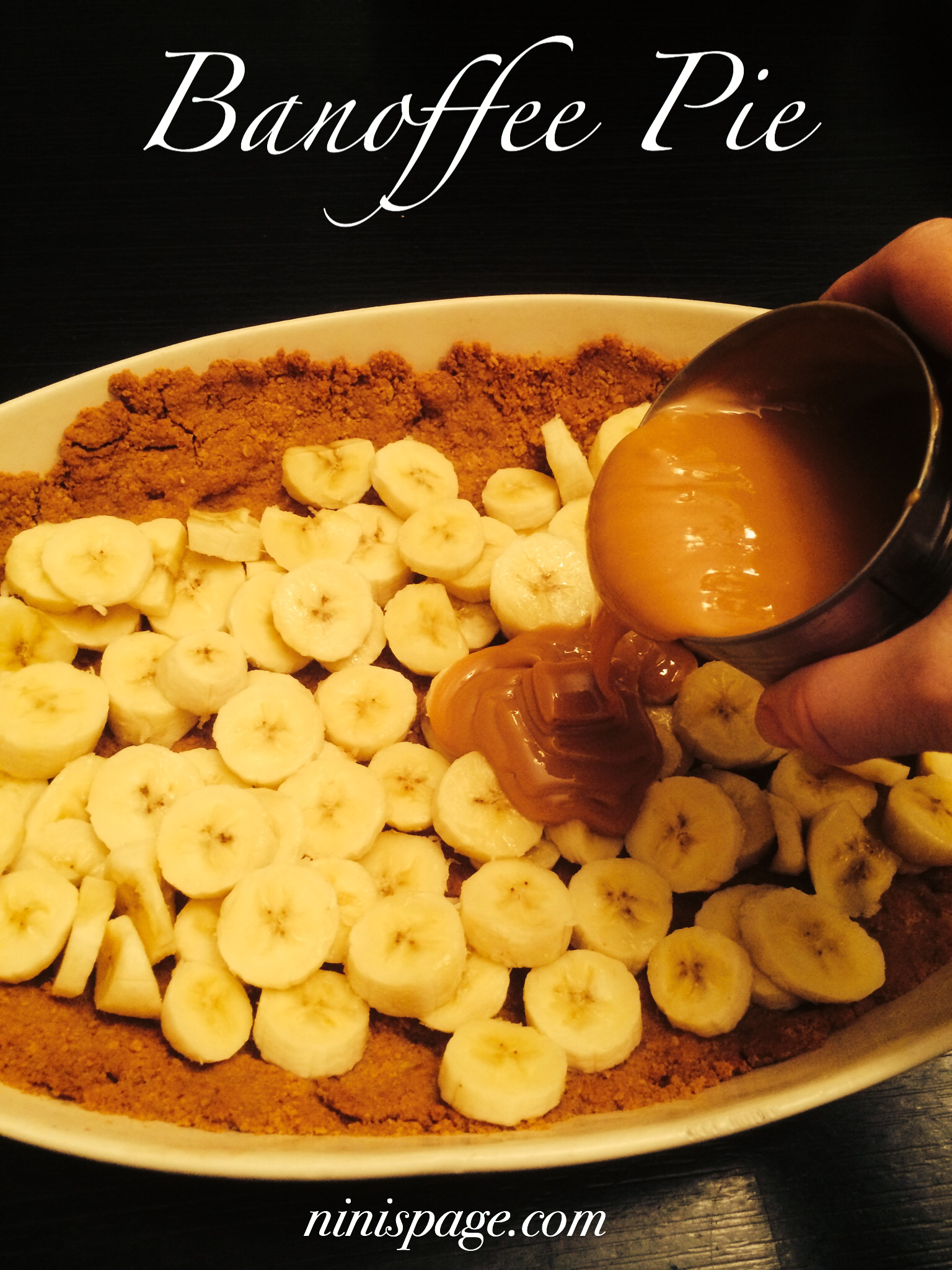 This is pure deliciousness! Caramel, bananas and whipped cream! Yum! If you are still trying to figure out how to say it, the emphasis is on the “off” say it with me Ban offee just like toffee…Banoffee Pie. That’s it!